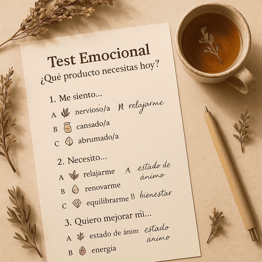 Una herramienta interactiva que te permite identificar tu estado emocional y elegir el producto natural más adecuado.